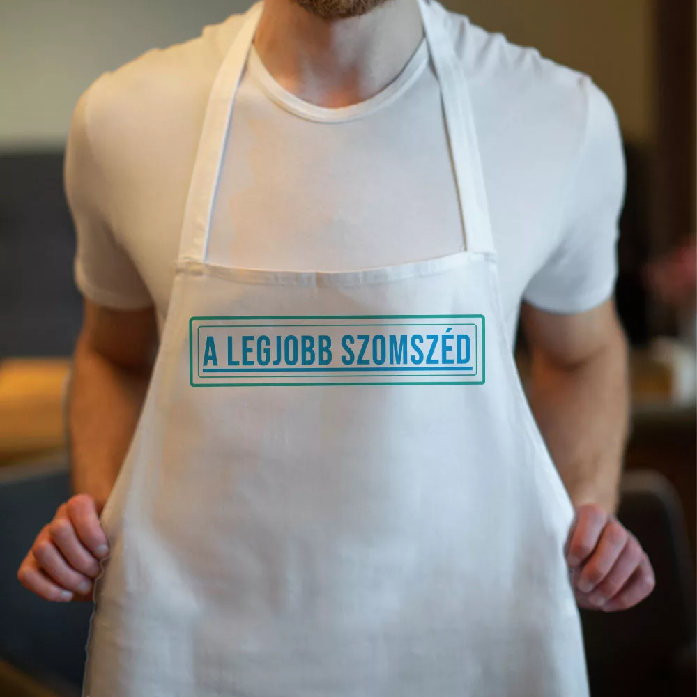 Feliratos kötény, legjobb szomszéd. Ajándék a legjobb szomszédnak, meglepetés születésnapra, névnapra egy egyedi kötény választható színben.