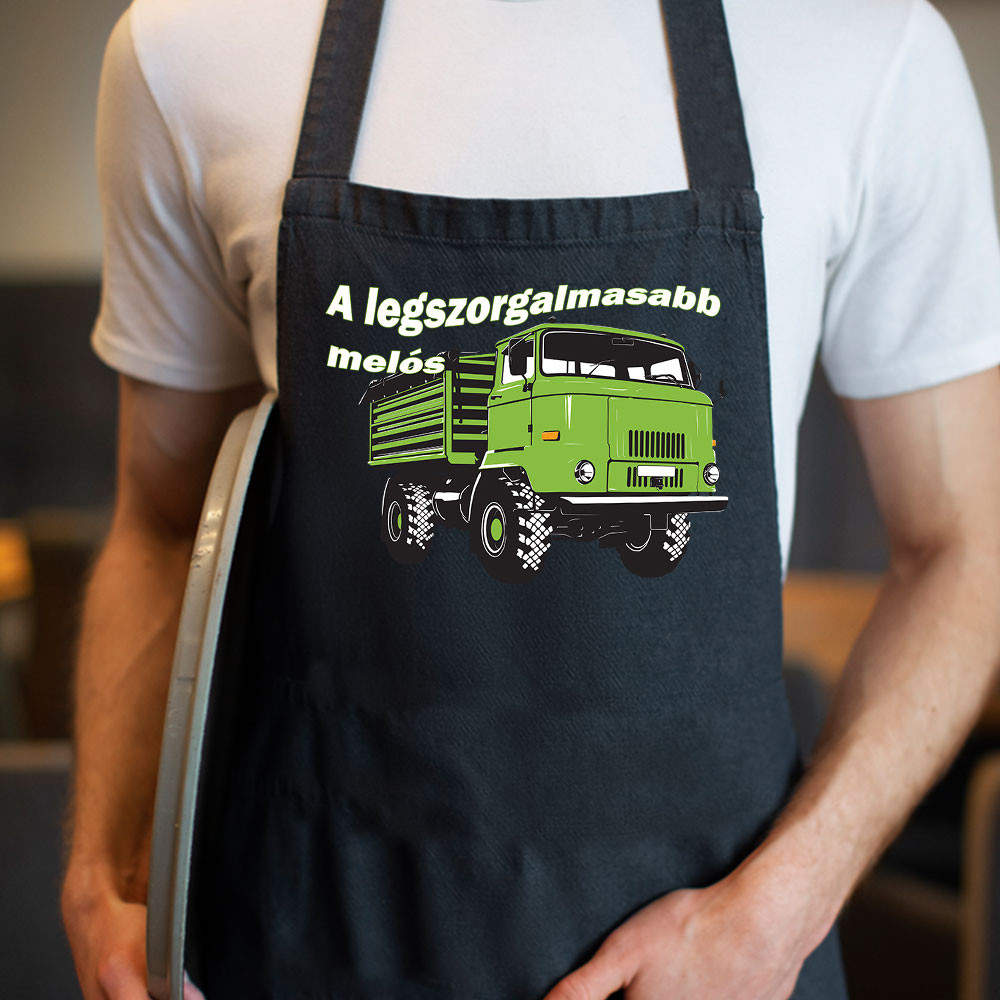 IFA L60 kötény, legszorgalmasabb melós. Ajándék a legszorgalmasabb munkatársnak egy IFA L60 tartós nyomatával. Lepd meg kollegádat egy ilyen köténnyel születésnapján, névnapján vagy nyugdíjba vonulása alkalmából.