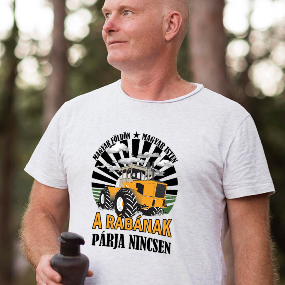 Ajándék traktorosoknak, Rába feliratos póló. Magyar földön, magyar isten a Rábának párja nincsen. Meglepetés Rába rajongó vagy tulajdonos apukáknak, barátoknak. Tartós nyomat, 100% pamut póló választható színben.
