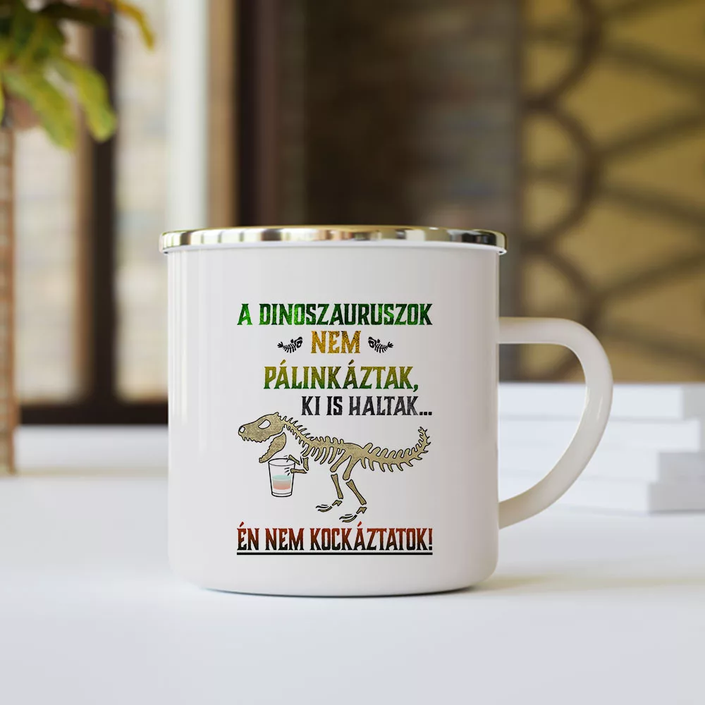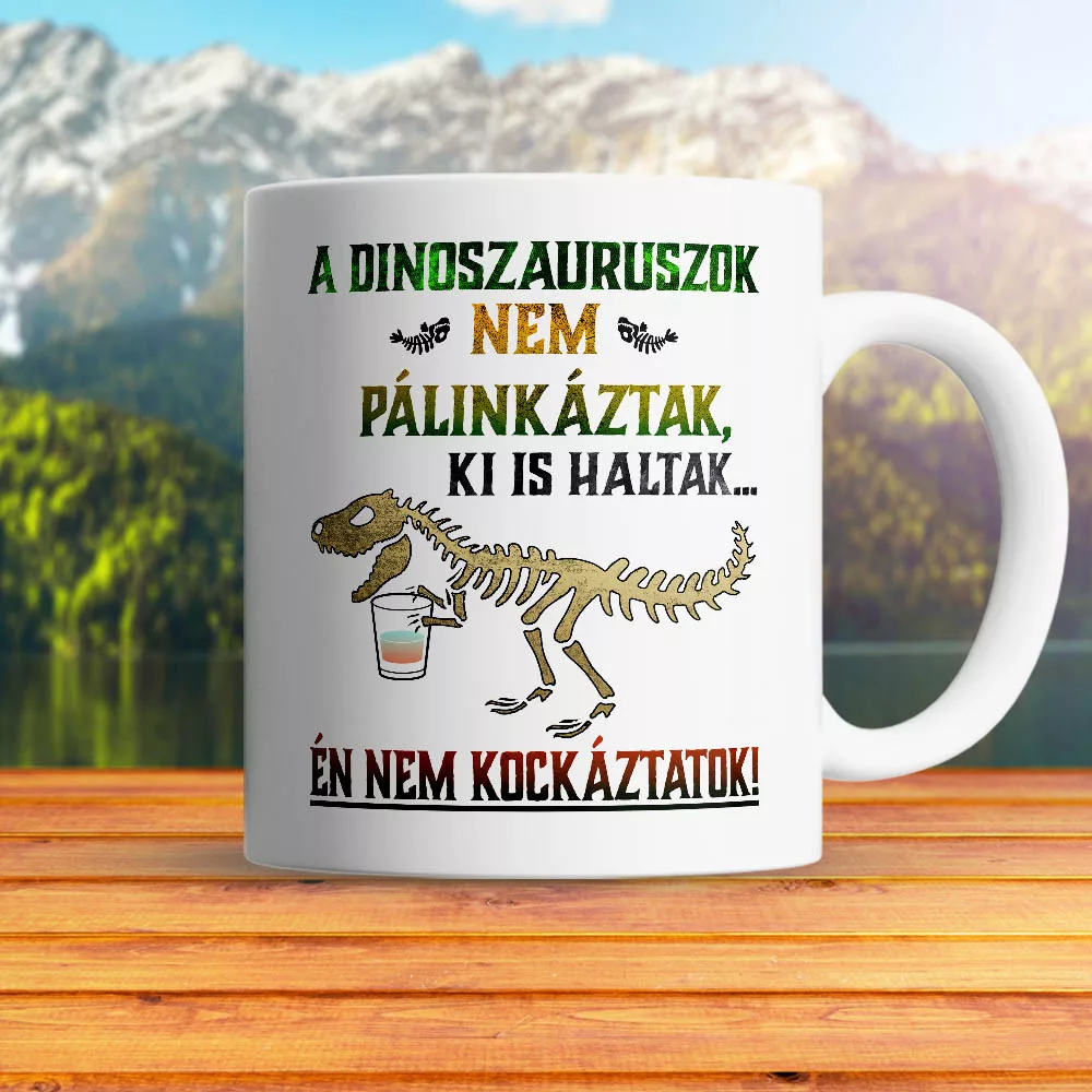 Vicces dinós ajándék, pálinkás bögre. A dinoszauruszok nem pálinkáztak, ki is haltak feliratos bögre, humoros ajándék pálinka kedvelő barátodnak, családtagodnak születésnapra, névnapra.