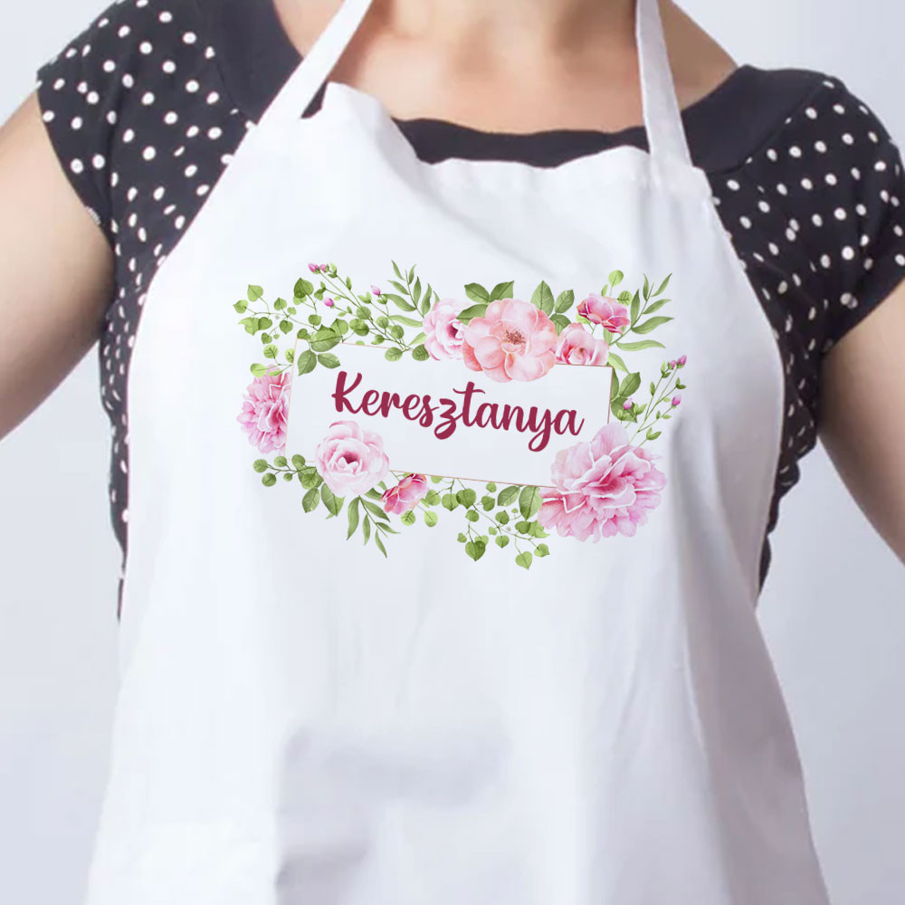 Keresztanyás kötény, ajándék keresztszülőnek. Hangulatos virágos mintás kötény keresztszülőknek anyák napjára, születésnapra vagy bármilyen alkalomra amikor keresztanyádat szeretnéd valamilyen kedves ajándékkal meglepni.