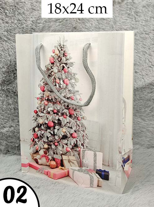 Karácsonyi dísztáska, csillogó díszes. Kétféle mintájú, igazi karácsonyi hangulatú dísztáska, ami bármelyik korosztály számára tökéletes díszcsomagolást nyújt a karácsonyi ajándéknak. Bögrék, kulcstartók és kisebb méretű ajándéktárgyak mellé ajánljuk.