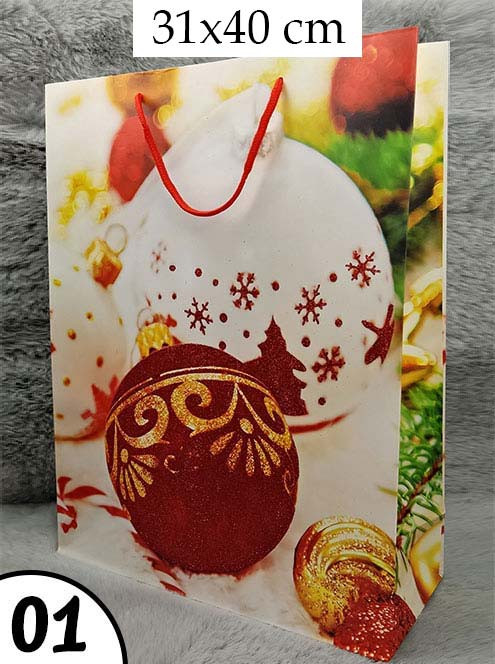 Nagy karácsonyi dísztáska, piros gömbös. Kétféle mintájú, igazi karácsonyi hangulatú dísztáska, csillogó gömb mintával, ami bármelyik korosztály számára tökéletes díszcsomagolást nyújt a karácsonyi ajándéknak. Párnák, törölközők és nagyobb ajándéktárgyak mellé ajánljuk.