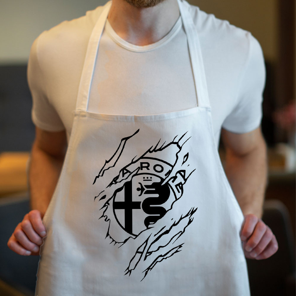 Tépett Alfa Romeo kötény, autós ajándékok. Egyedi ajándék alfa tulajdonos barátodnak vagy olyan ismerősödnek aki ilyen autóról álmodozik születésnapra, karácsonyra.