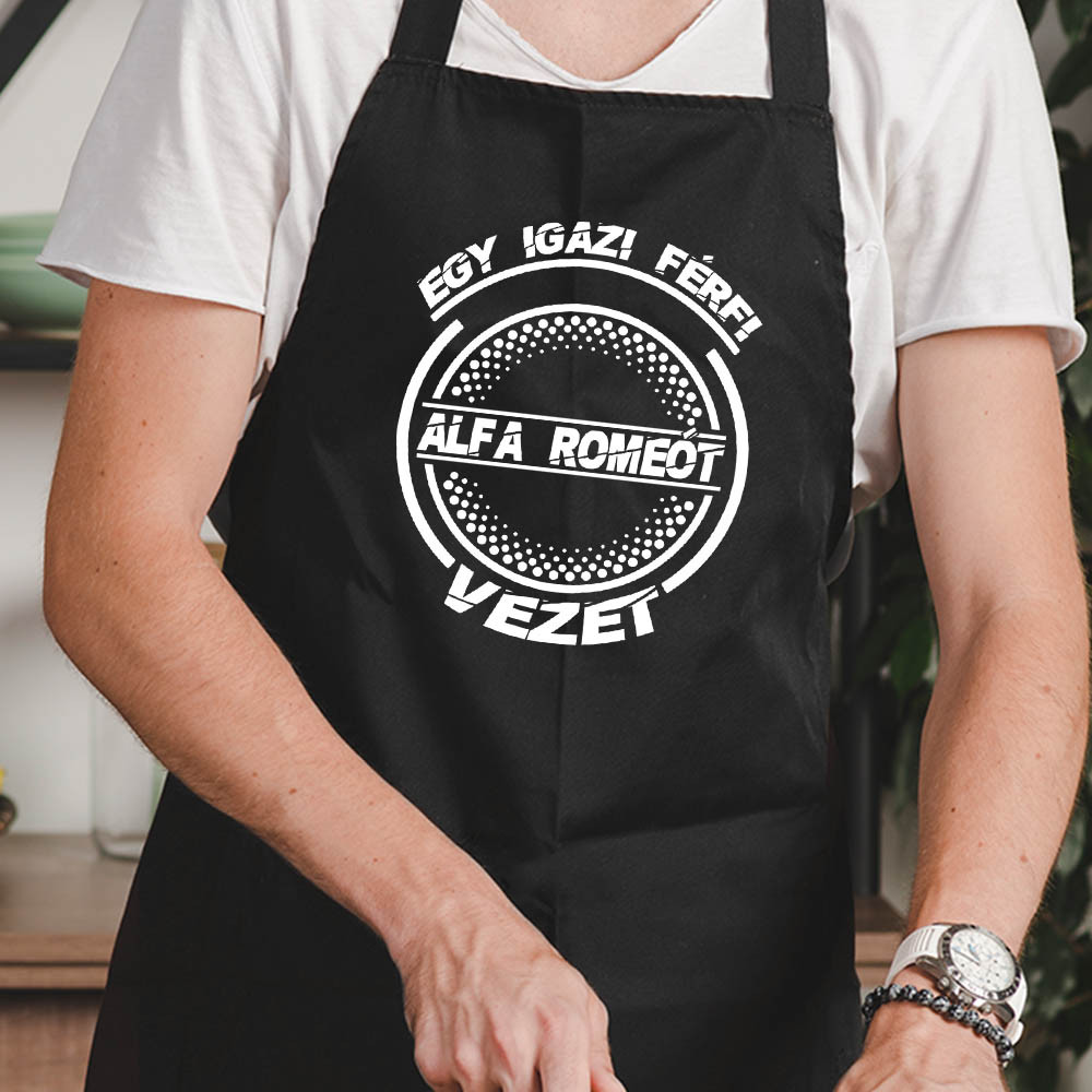 Alfa romeos kötény, igazi férfi alfát vezet. Egy igazi férfi alfa romeo-t vezet feliratos kötény. Egyedi ajándék alfa tulajdonos barátodnak vagy olyan ismerősödnek aki ilyen autóról álmodozik születésnapra, karácsonyra.