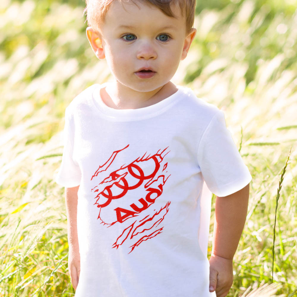 Audi logós gyerek póló, Audi tépett minta. Póló gyerekeknek egyedi Audi grafikával. Ajándék Audi rajongó családtagoknak. Egyedülálló póló színválasztékunkból válaszd ki a neked megfelelő színt és méretet és mi küldjük is neked a tökéletes ajándékot minden alkalomra.