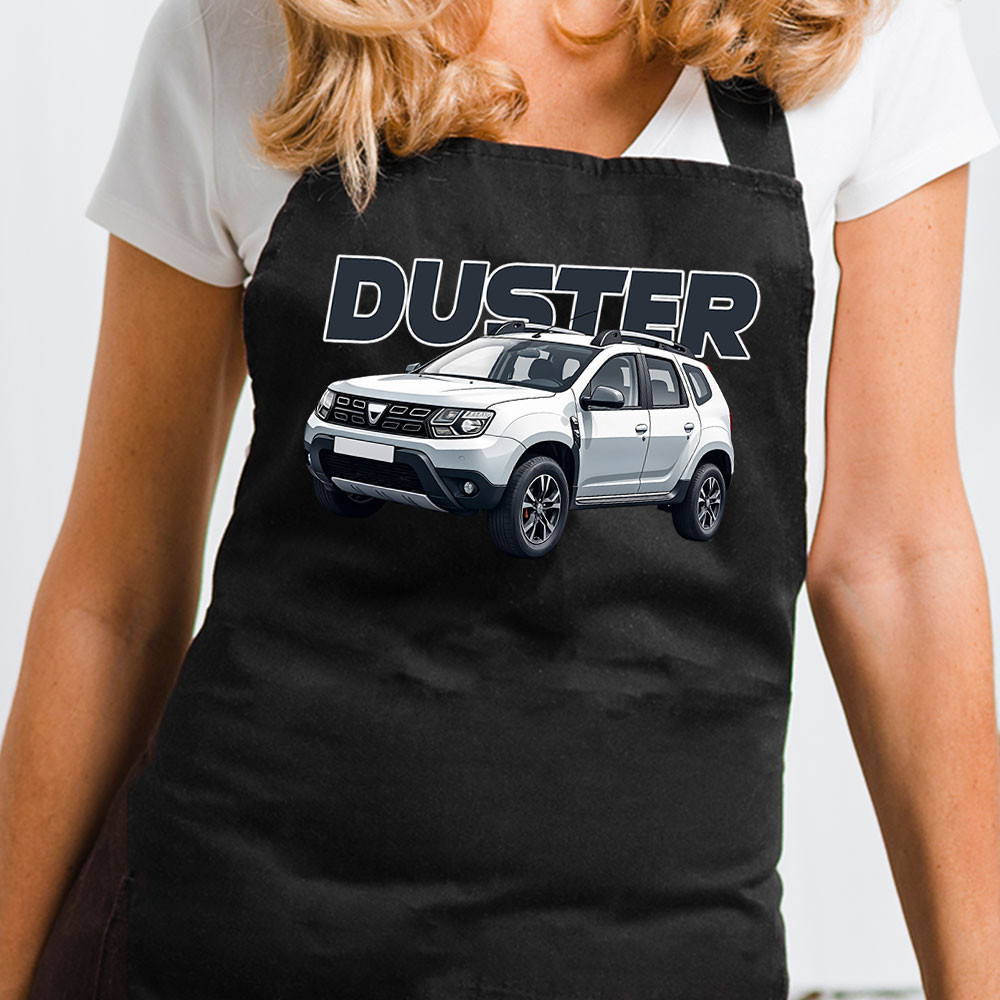 Autós kötények, Dacia. Ha imádod a Dacia Duster robusztus megjelenését és megbízhatóságát, akkor ezt a kötényt neked találták ki! A kötény középpontjában egy részletgazdag, modern Duster illusztráció áll, amely minden autórajongó szívét megdobogtatja. Ha a Duster a kedvenced, ez a kötény kötelező darab. Szerezd be magadnak vagy lepd meg vele azt, aki szívvel-lélekkel Dusteres.