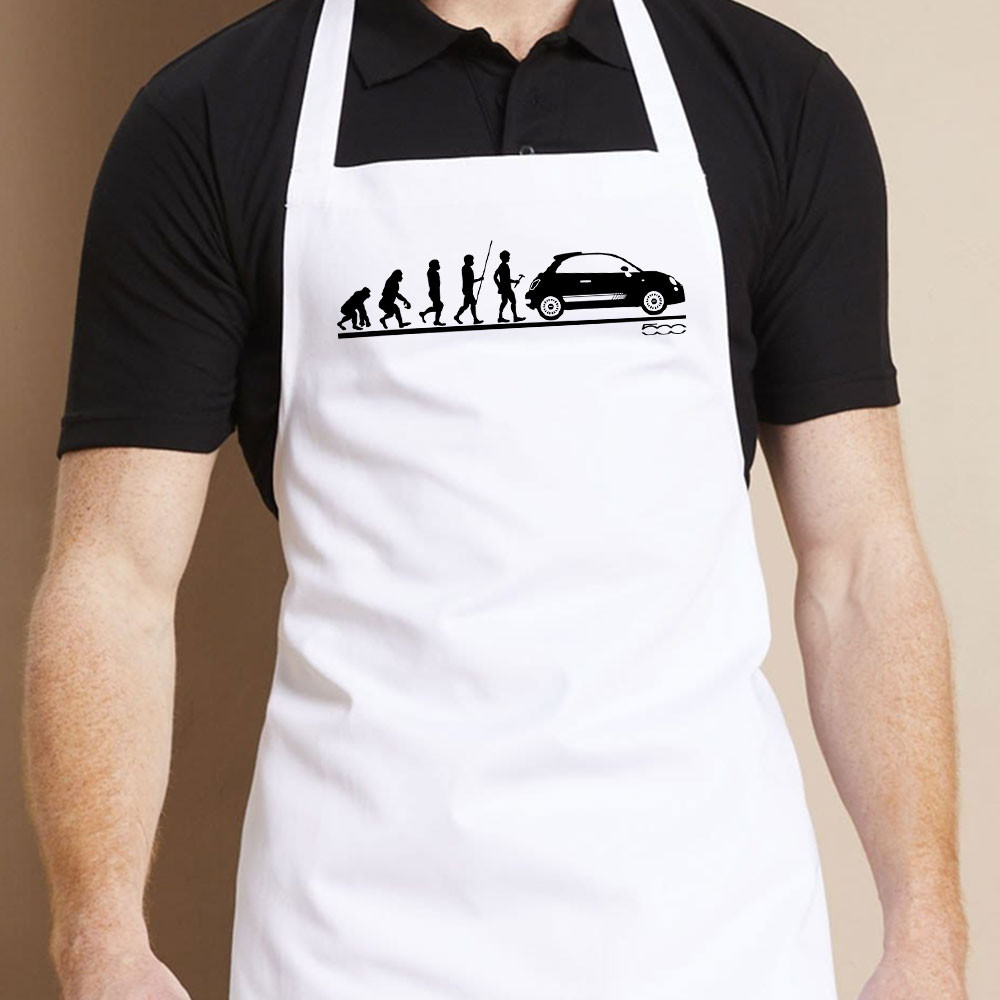 Autós kötények, Fiat 500 Evolution kötény. Ha Te is egy Fiat 500 büszke tulajdonosa vagy, akkor ezt a kötényt neked találtuk ki. Vászon kötény fekete és fehér színben.