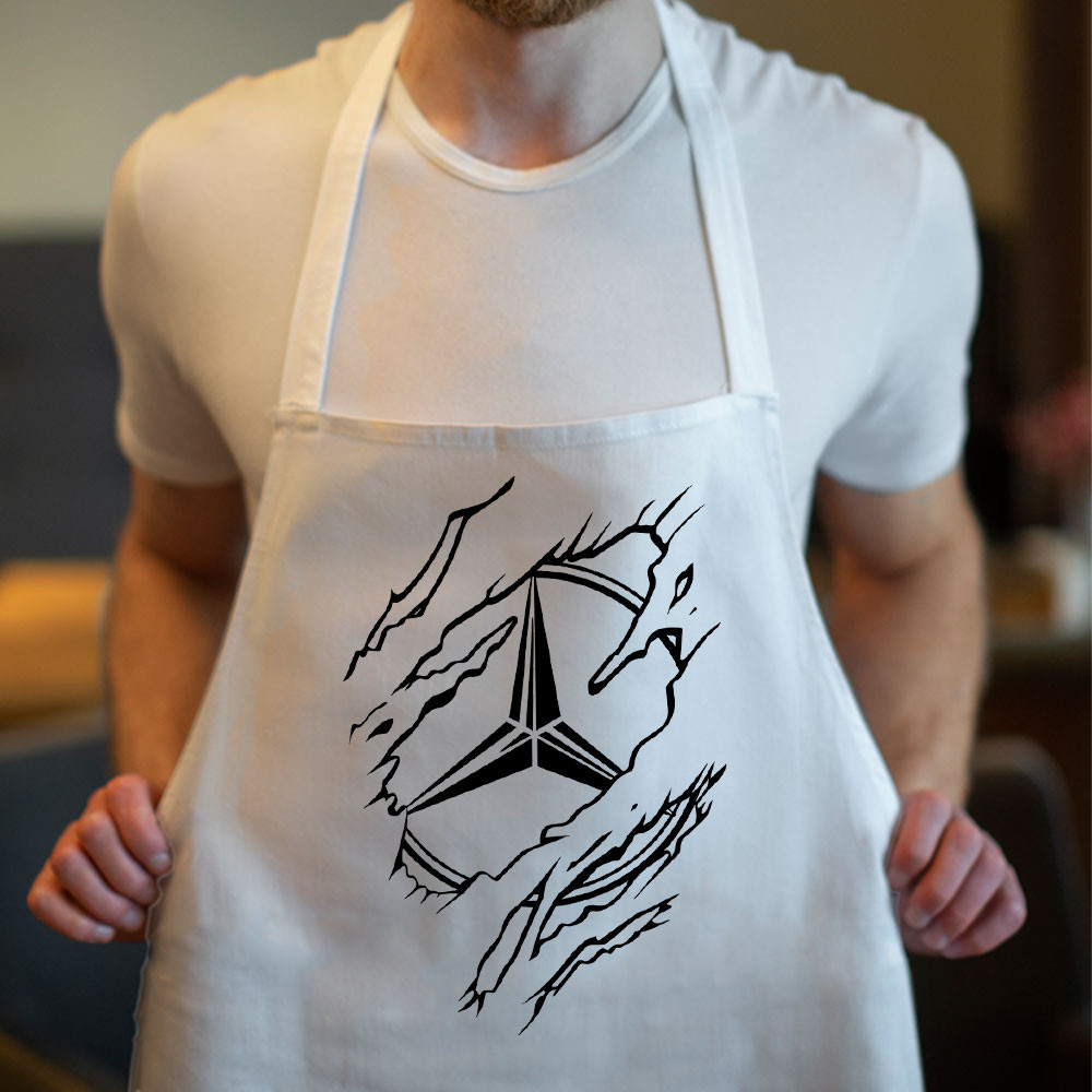 Mercis kötény, tépett logós kötény. Mercedes tulajdonos vagy és szeretnél egy olyan kötényt ami garantáltan nem lesz másnak? Ne is keresgélj tovább hiszen tőlünk ezt megrendelheted fekete vagy fehér színben!