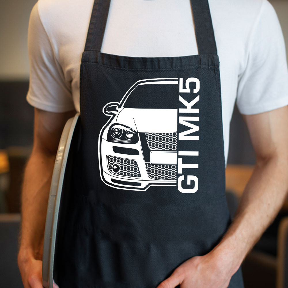 Vw Golf GTI Mk5 kötény, Volkswagen kötények. Egy népszerű autótípus, amihez más nem is hiányozhat, mint egy hozzá illő kötény. Ajándékozd meg családtagod, ismerősöd aki egy Volkswagen Golf GTI Mk5 büszke tulajdonosa.