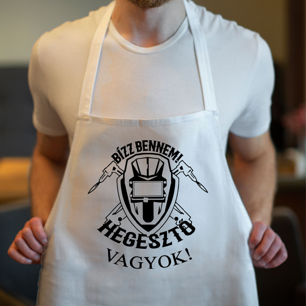 Kötény hegesztőknek, bízz bennem hegesztő vagyok. Mindig fontos egy megbízható szakember, ha te is ismersz olyan hegesztő embert aki a szakmában a legjobb ajándékozd meg egy ilyen köténnyel!