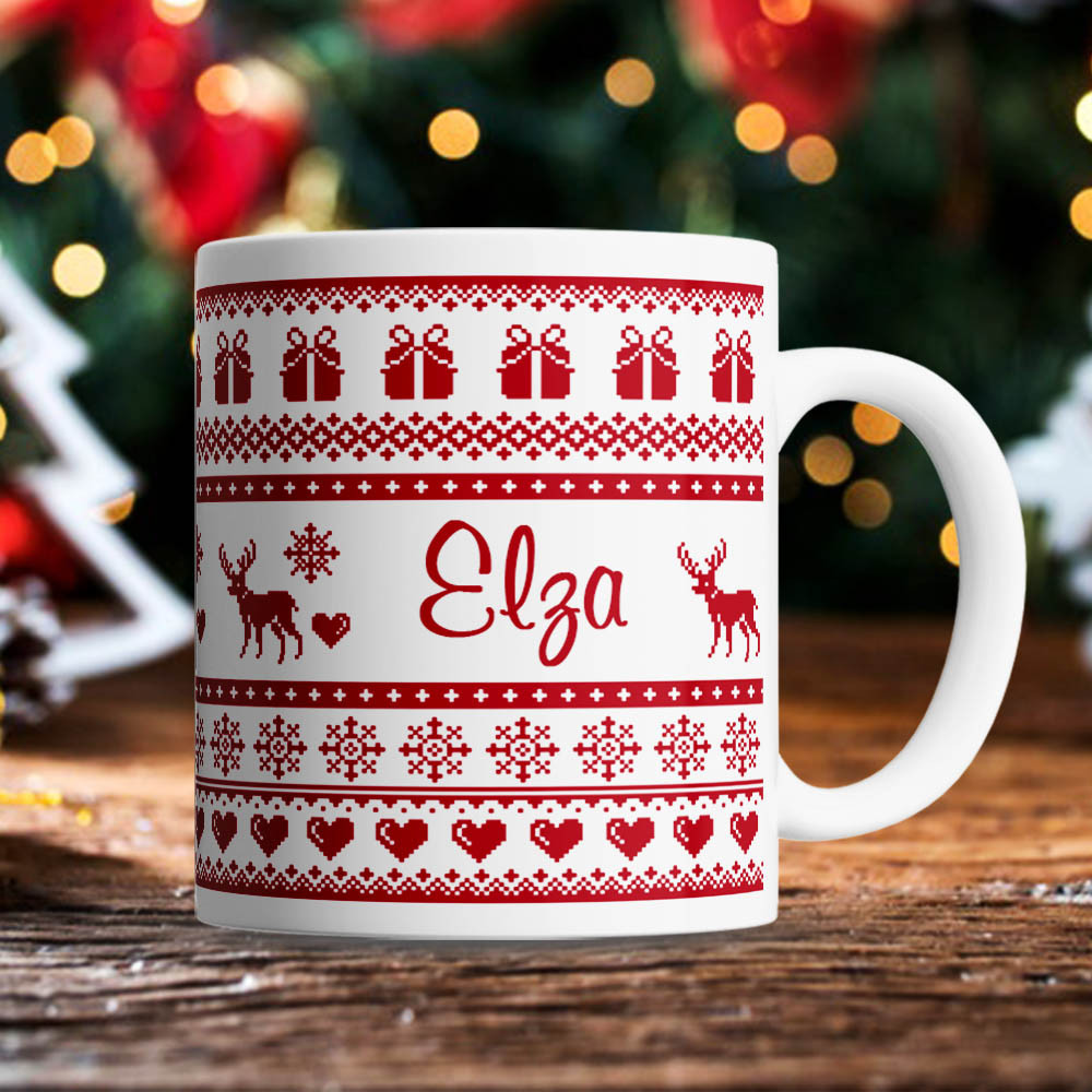 Bögre karácsonyra nőknek, Norvég mintás. Egy igazi karácsonyi klasszikus norvég mintás bögre szarvasokkal. Bögre, amit akár az család részére megrendelhetsz névre szólóan, norvég mintával. Karácsonyra tökéletes ajándék kollégáknak, barátoknak, családtagoknak. Rendelj hozzá díszdobozt is!