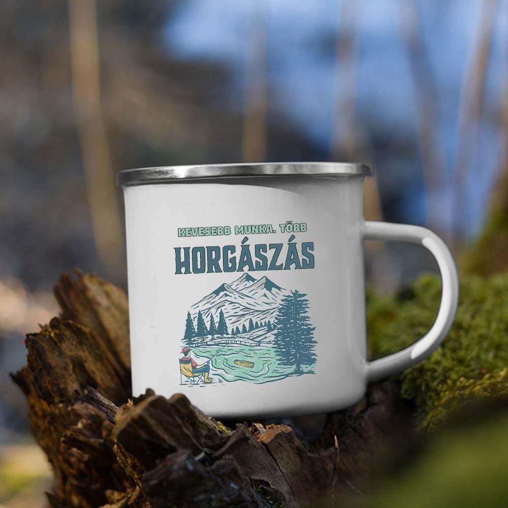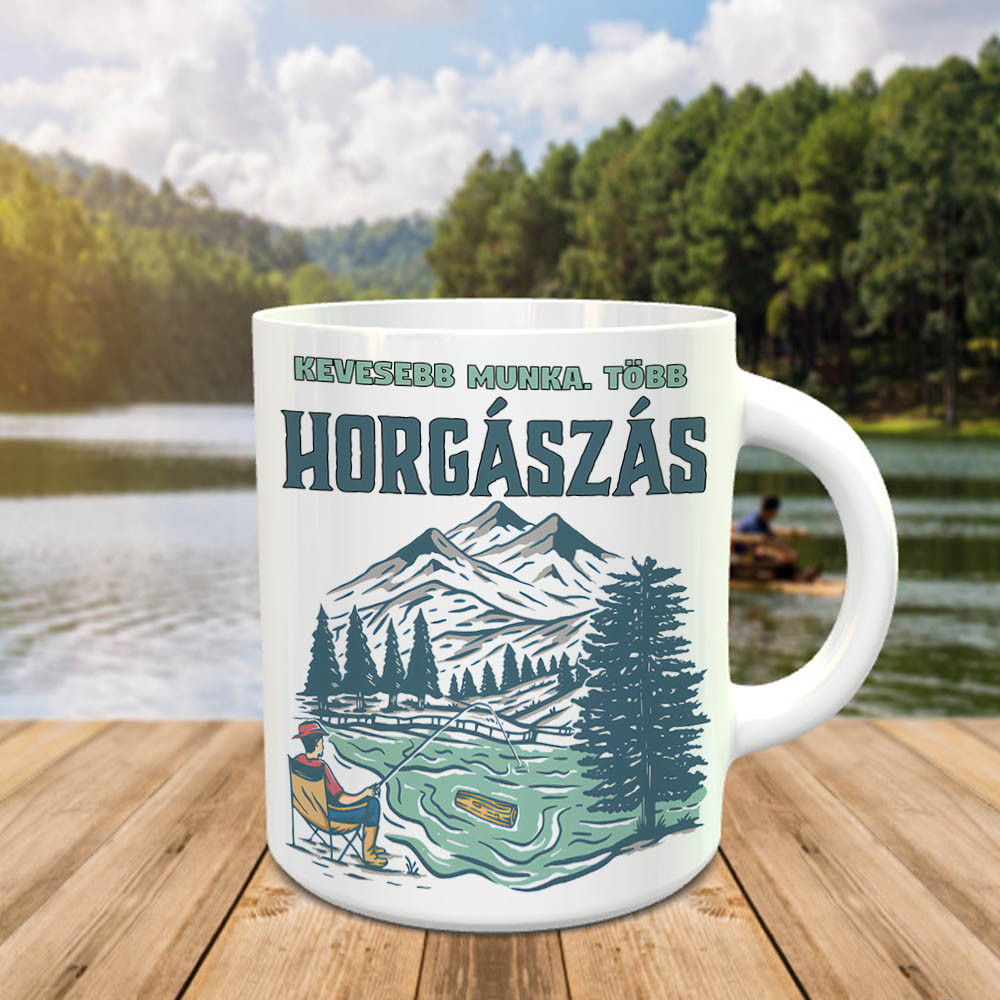 Vicces pecás bögre, kevesebb munka. Egyedi, kevesebb munka, több HORGÁSZÁS feliratos horgász bögre minden szenvedélyes pecás számára, akik a munkából mindig a vízpartra vágynak. A bögrén található minta tökéletesen visszaadja a horgászat hangulatát, amiről minden pecás álmodik. Kiváló meglepetés névnapra, születésnapra.