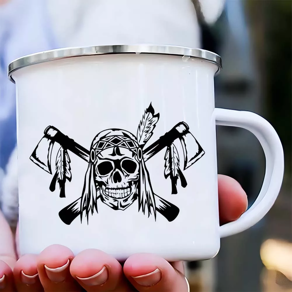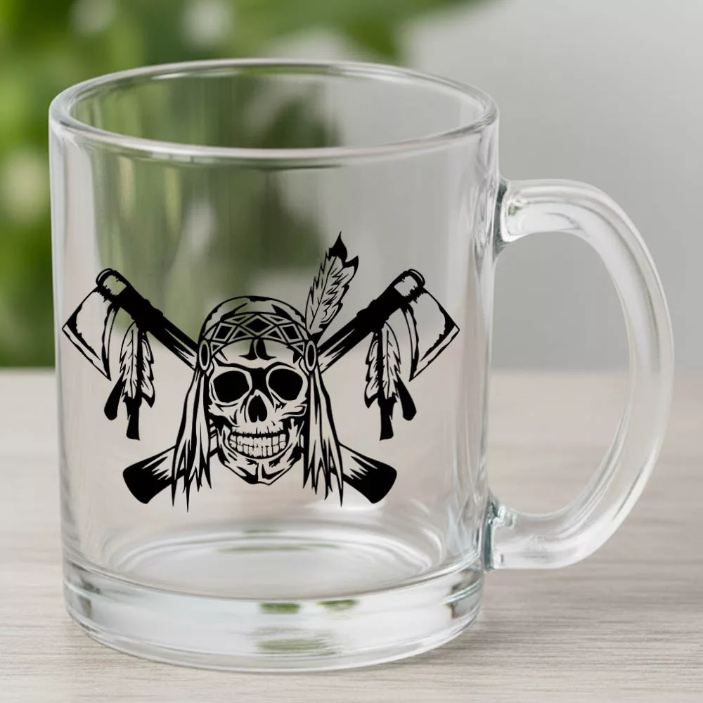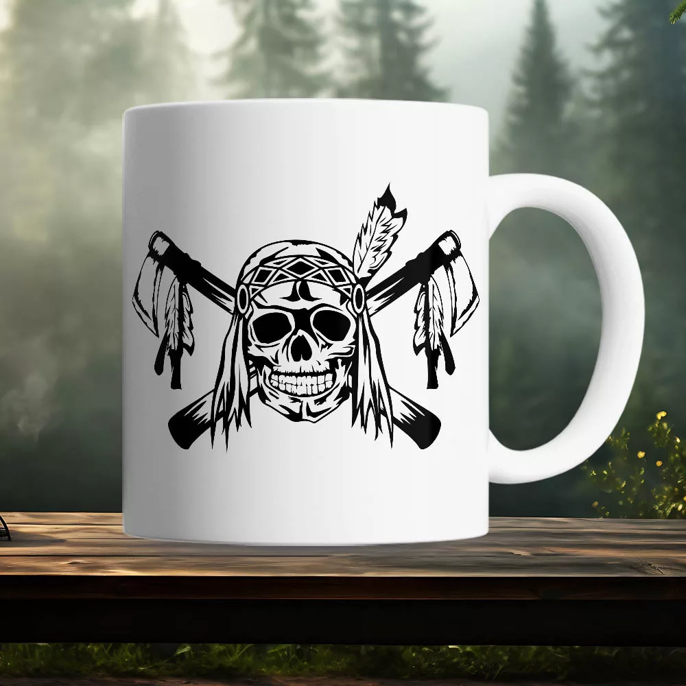 Indián koponyás bögre, halálfejes bögre. Ajándék az indiánok rajongójának, aki imádja az indiános könyveket, filmeket. Sokféle színű bögre, tartós nyomattal, melynek a színét is Te döntheted el.