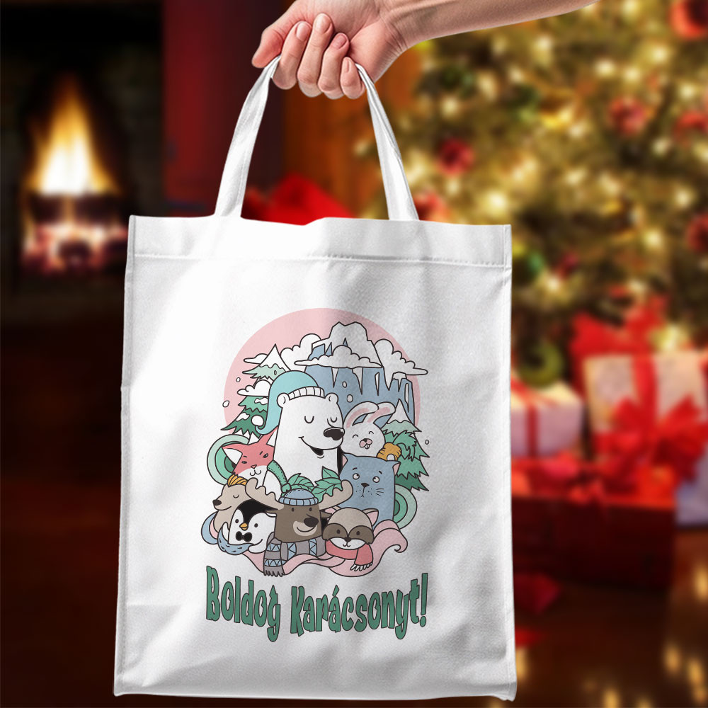Karácsonyi ajándék, állatfigurás vászontáska. Aranyos állatfigurás táska tartós mintával, örök emlék marad, amit használhatsz díszcsomagolásként is ajándékodhoz vagy bevásárlótáskának.