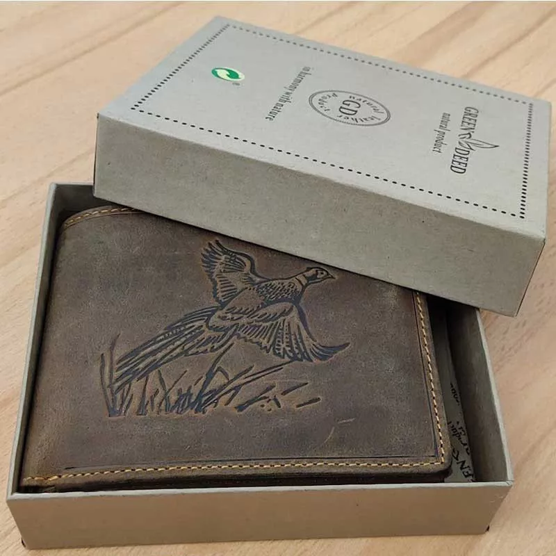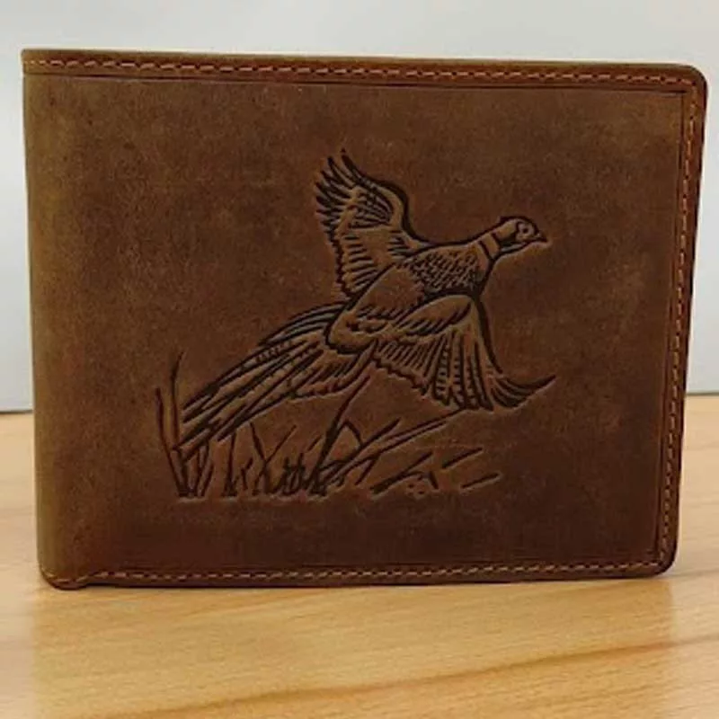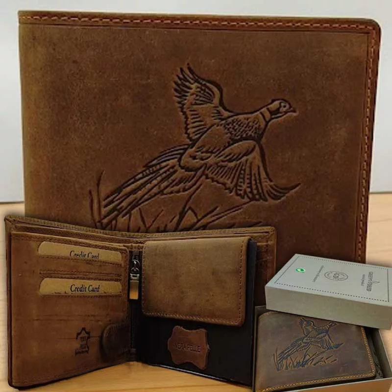 Ajándék vadásznak, pénztárca fácán mintával. Ideális ajándék vadászoknak: fácánmintás, valódi bőrből készült pénztárca. Praktikus választás születésnapra, névnapra vagy karácsonyra. A pénztárca RFID-védelemmel rendelkezik, prémium minőségű és 100%-ban természetes bőrből készült.
