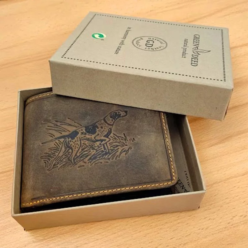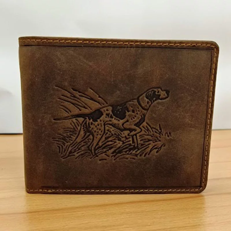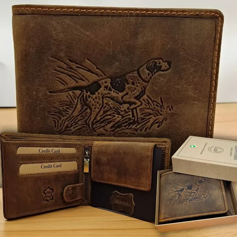 Ajándék vadásznak, pénztárca kutyás mintával. Kutyás mintájú pénztárca, kiváló ajándék vadászoknak. Praktikus és elegáns ajándékötlet születésnapra, névnapra vagy karácsonyra. Valódi marhabőrből készült, RFID-védelemmel ellátott prémium minőségű termék, 100%-ban természetes bőrből.