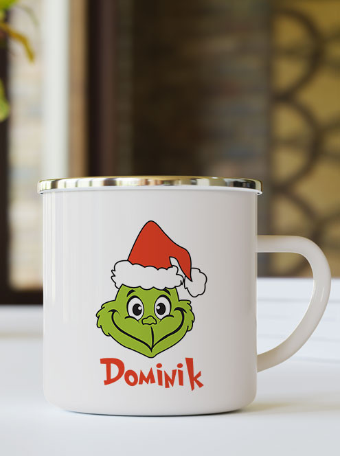 Karácsonyi bögre szett, Grincs kisfiú. Karácsonyi családi bögre szetthez külön rendelhető kisfiú grincs bögre szeretet ünnepére gyerekeknek humoros grincs figurával. Népszerű Grinch figurás bögre az egész családnak névre szólóan. Rendelhető akár kerámia vagy zománc bögrére is.