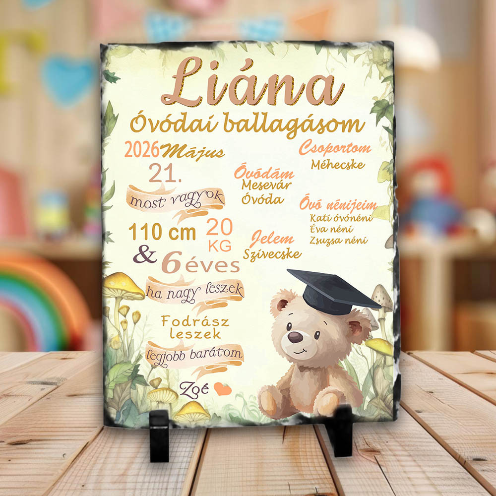 Az óvodai ballagás pillanata megérdemli, hogy ne csak egy keretbe zárt papírkép, hanem egy különleges, súlyos és maradandó alkotás őrizze meg. Ez a 15x20 cm-es fotó kőlap a természet erejét és a gyermekkor legszebb emlékeit ötvözi. A rusztikus, töredezett szélek minden darabot egyedivé tesznek, így nincs két pontosan egyforma emlékőrző.