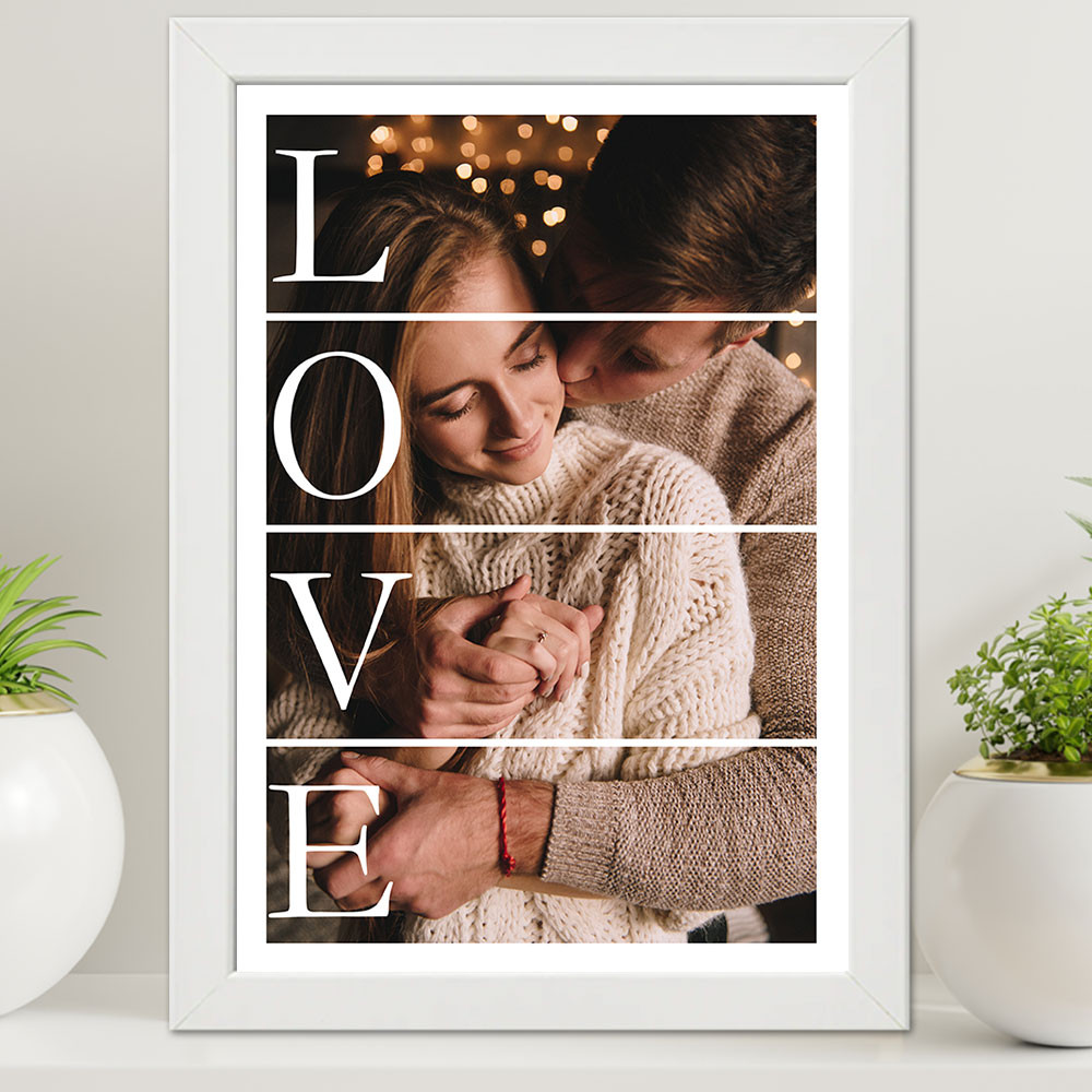 Fényképes A3 falikép szerelmednek, Love. Szerelmes ajándék barátod, barátnőd születésnapjára, névnapjára, de akár Valentin napra is tökéletes meglepetés. Egyedi meglepetés kedvenc közös fotótokkal LOVE felirattal, kedves meglepetés annak, akit a legjobban szeretsz.
