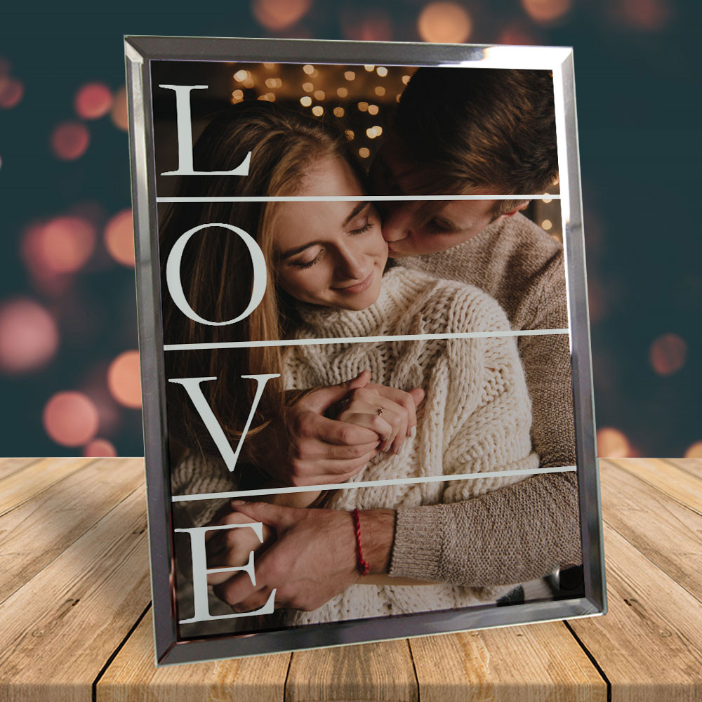Fényképes fotóüveg szerelmednek, Love. Szerelmes ajándék barátod, barátnőd születésnapjára, névnapjára, de akár Valentin napra is tökéletes meglepetés. Egyedi meglepetés kedvenc közös fotótokkal LOVE felirattal, kedves meglepetés annak, akit a legjobban szeretsz. Igazán éles, csillogó termék csak jó minőségű, megfelelő felbontású fényképből készül.
