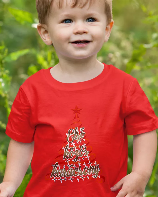 Karácsonyi gyerek póló, első közös karácsony. Első közös karácsony mintás családi póló szett külön rendelhető gyerek méretű darabja. Most akciósan csak 1 darab kapható.
