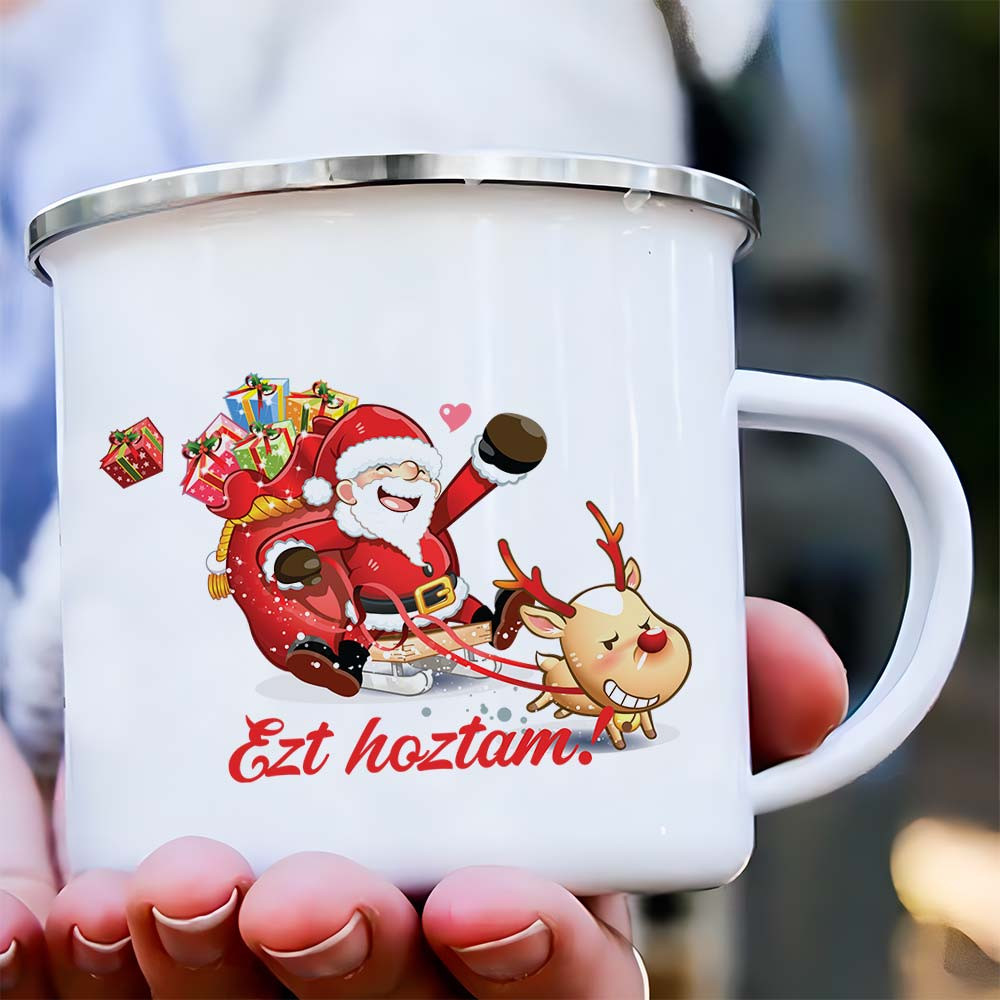 Ajándék mikulásra, Ezt hoztam bögre. Vicces bögre a Mikulástól, vagy Tőled... barátoknak, kollégáknak szuper meglepetés bármilyen korosztály számára. Tartós mintával, örök emlék marad. 3 dl-es kerámia vagy zománc bögre, akár díszdobozban is.