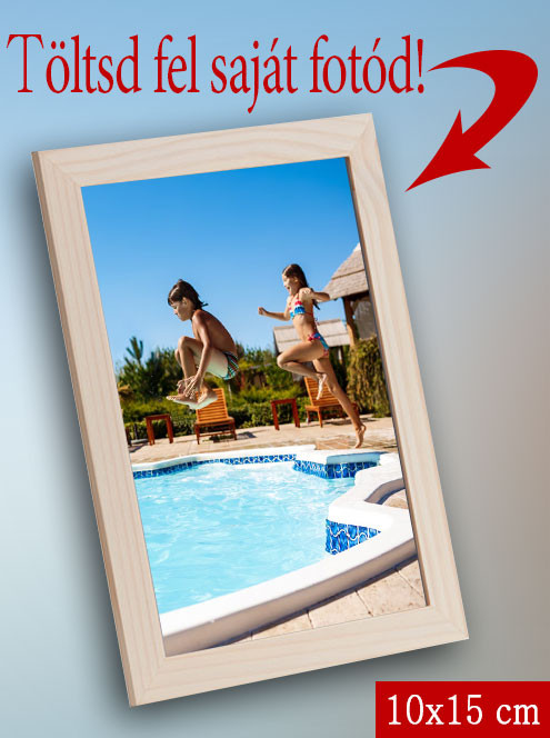 Fotónyomtatás, 10x15cm fotó fa képkeretben. Fa képkeret kitámasztós és akasztós hátfallal, melyben mi minden esetben a küldött kép alapján fogjuk álló vagy fekvő helyzetbe elhelyezni a képet. 1 darab 10x15cm-es fotóval kérheted.