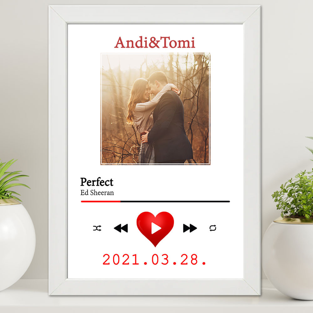Szerelmes ajándék, közös dal falikép nagy. Valentin napi, évfordulós ajándék barátodnak, barátnődnek, házasoknak. Lepd meg férjed, feleséged akár karácsonyra is egy nagy méretű faliképpel, ami egy képeteket ábrázolja egy zenelejátszóban ahhoz a közös zenétek megy.