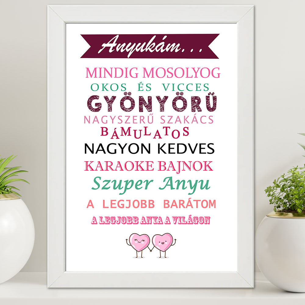 Ajándék anyának, Legjobb anya nagyméretű falikép kedves feliratokkal. Tökéletes ajándék édesanyáknak anyák napjára, születésnapra, karácsonyra.