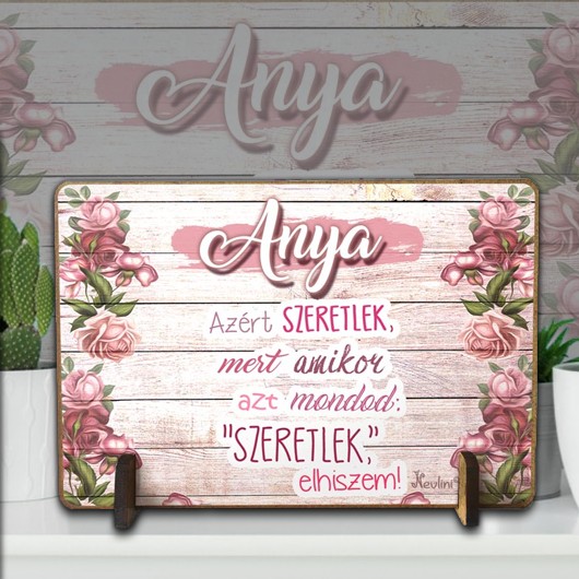 Anyák_napi_ajándék_Anya_azért_szeretlek_Fatábla_tartóval
