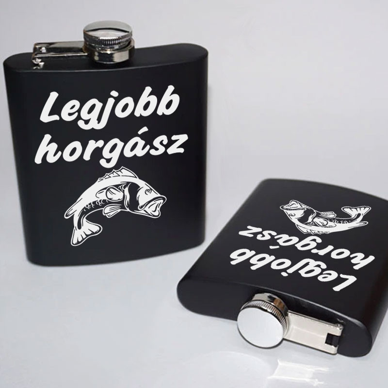 Pecás flaska, legjobb horgász laposüveg. Ajándék Édesapáknak, barátoknak, horgásztársaknak, fekete fém, halas flaska melybe, bármilyen ital tölthető. Tökéletes meglepetés születésnapra, névnapra, karácsonyra.
