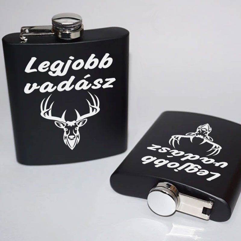 Szarvasos flaska, legjobb vadász laposüveg. Ajándék Édesapáknak, barátoknak, vadásztársaknak, fekete fém, szarvas mintás flaska melybe, bármilyen ital tölthető. Tökéletes meglepetés születésnapra, névnapra, karácsonyra.