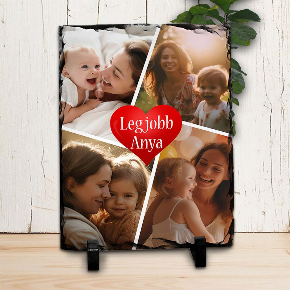 Kőlap kollázs fotókkal, legjobb anya. Kollázs fényképes kőlap a legjobb Édesanyának. Különleges ajándék Édesanyád születésnapjára, anyák napjára vagy karácsonyra. Egy meglepetés amiről bármikor eszébe jutsz, ha ránéz. Kőlap, melyen egy 4 fotóból álló kollázs fotóösszeállítás látható a Te kedvenc képeidből.