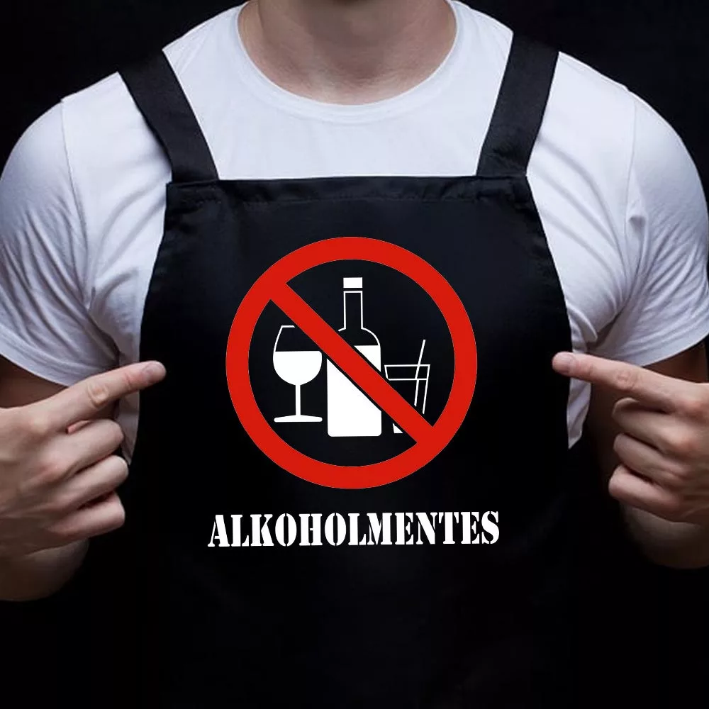 - Fekete kötényen DTF eljárással készül a nyomtatás, amely élénk, kontrasztos megjelenést és strapabíró nyomatot biztosít.