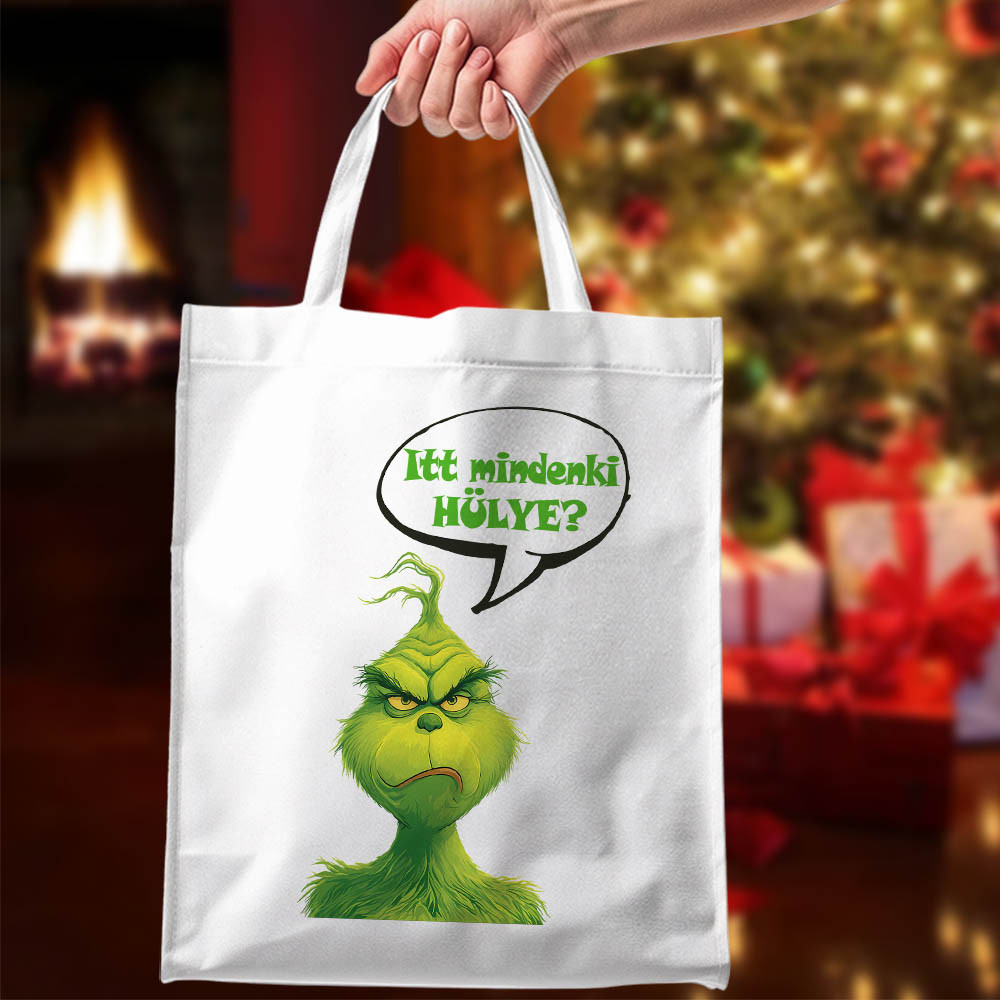 A „Itt mindenki hülye?” mintás Grincs vászontáska nemcsak poénos, de strapabíró is.