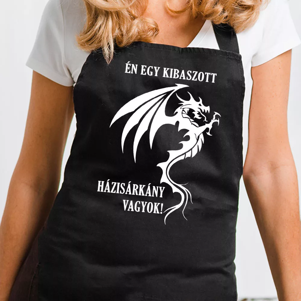 Házisárkány kötény, vicces ajándék nőknek. Én egy kibaszott házisárkány vagyok feliratos tréfás kötény, vicces ajándék nőknek, feleségeknek. Családi közös főzések kiváló hangulatfokozó kelléke lehet. Fekete színben is rendelhető. Fekete kötény rendelése esetén a minta fehér színnel kerül a termékre. A kötény anyaga vászon.