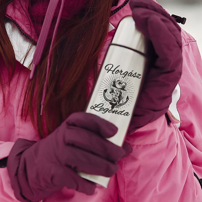Horgász ajándék, horgász legenda termosz. Ajándék születésnapra, karácsonyra horgász nőknek és férfiaknak. Minden horgász legendának praktikus, és hasznos ajándék téli és nyári napokon is.