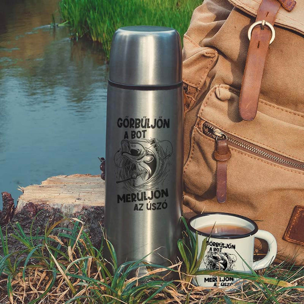 Halas termosz, görbüljön a bot, merüljön az úszó feliratos pecás ajándék, ami egy szerencsehozó termosznak is adható horgász családtagodnak, barátodnak. Kívánj neki szerencsét egy ilyen szuper termosszal.