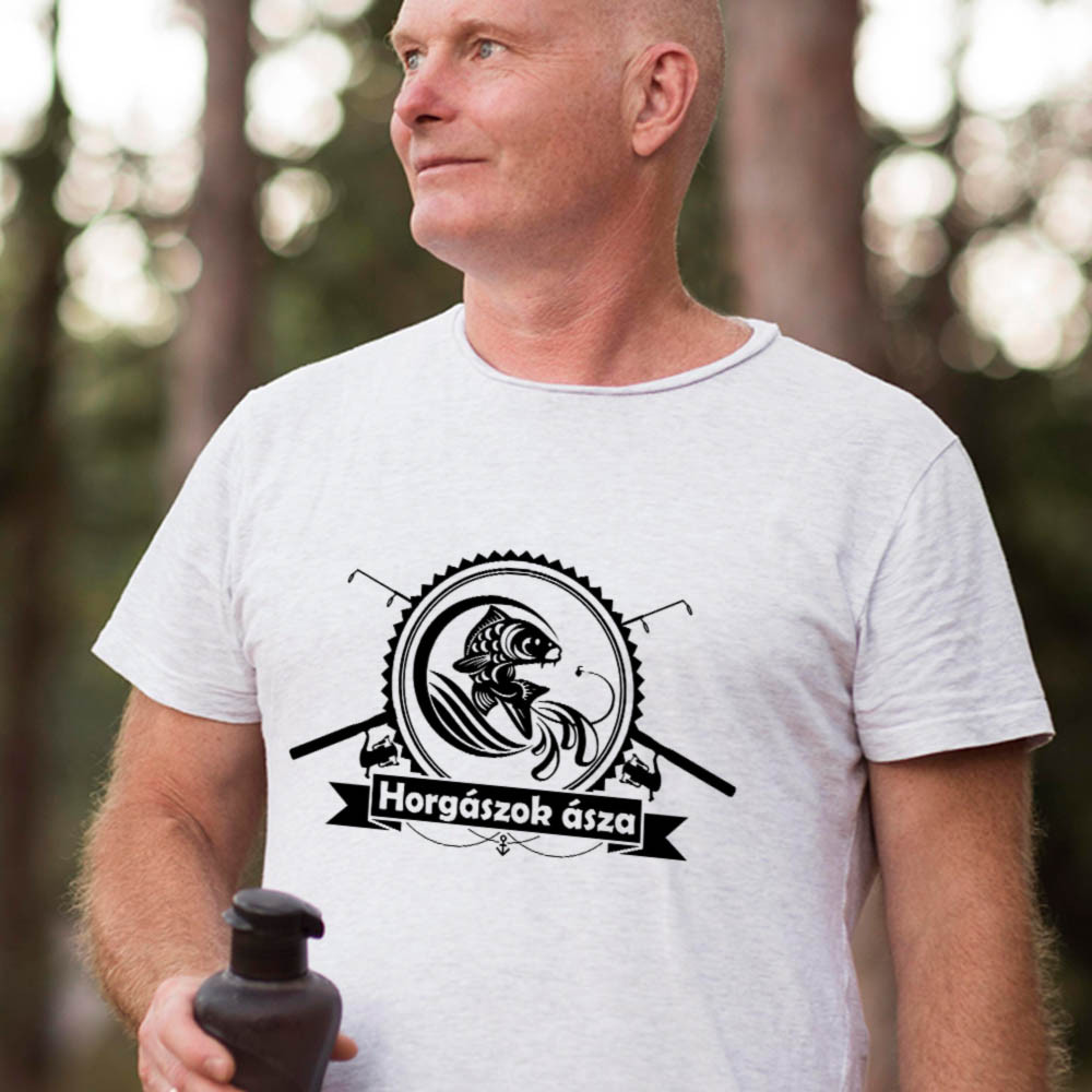 Ajándék horgászoknak, horgászok ásza feliratos póló pecásoknak. Horgászok ásza felirattal, minden pecás számára tökéletes viselet.