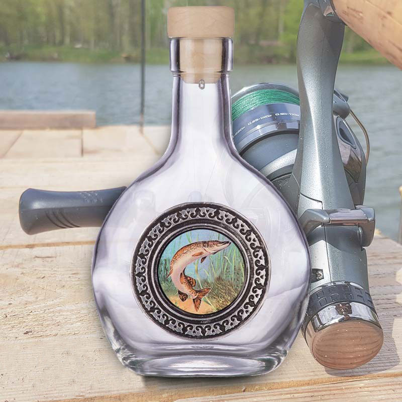 Csukás óncímkés pálinkás üveg – Elegáns 200 ml-es palack horgászoknak