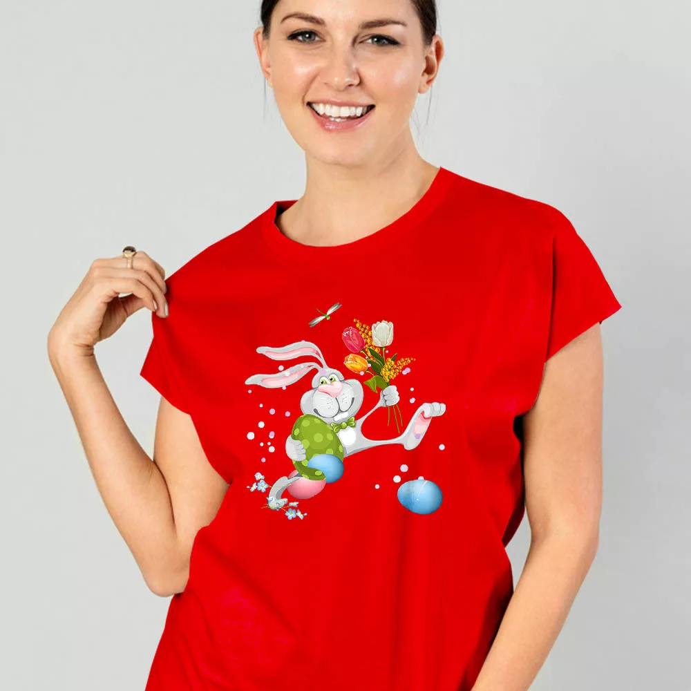Húsvéti ajándék, húsvéti nyuszis női póló. Aranyos tavaszi mintás, húsvéti nyuszis póló nőknek. Tökéletes viselet húsvét alkalmából Édesanyáknak, feleségeknek, barátnőknek!