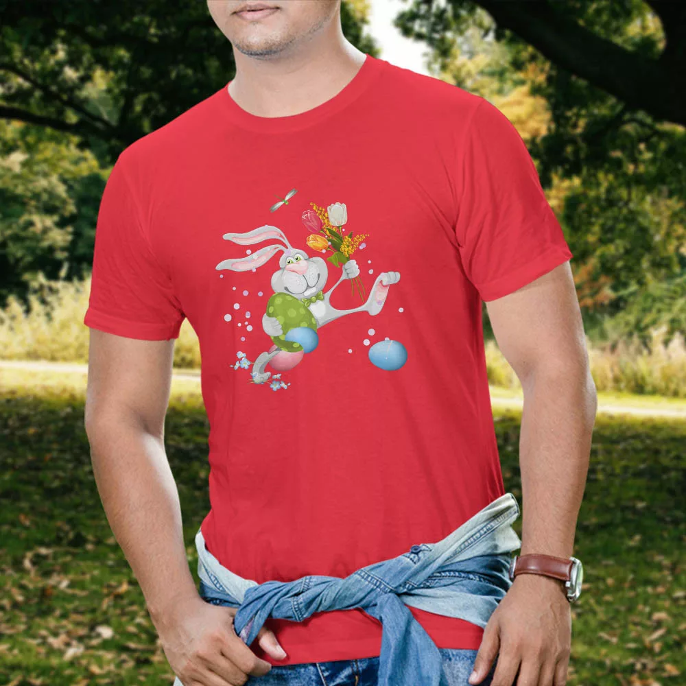 Húsvéti ajándék, Húsvéti nyuszis póló. Aranyos tavaszi mintás, húsvéti nyuszis póló férfiaknak. Tökéletes viselet húsvét alkalmából apáknak, férjeknek, nagypapáknak!