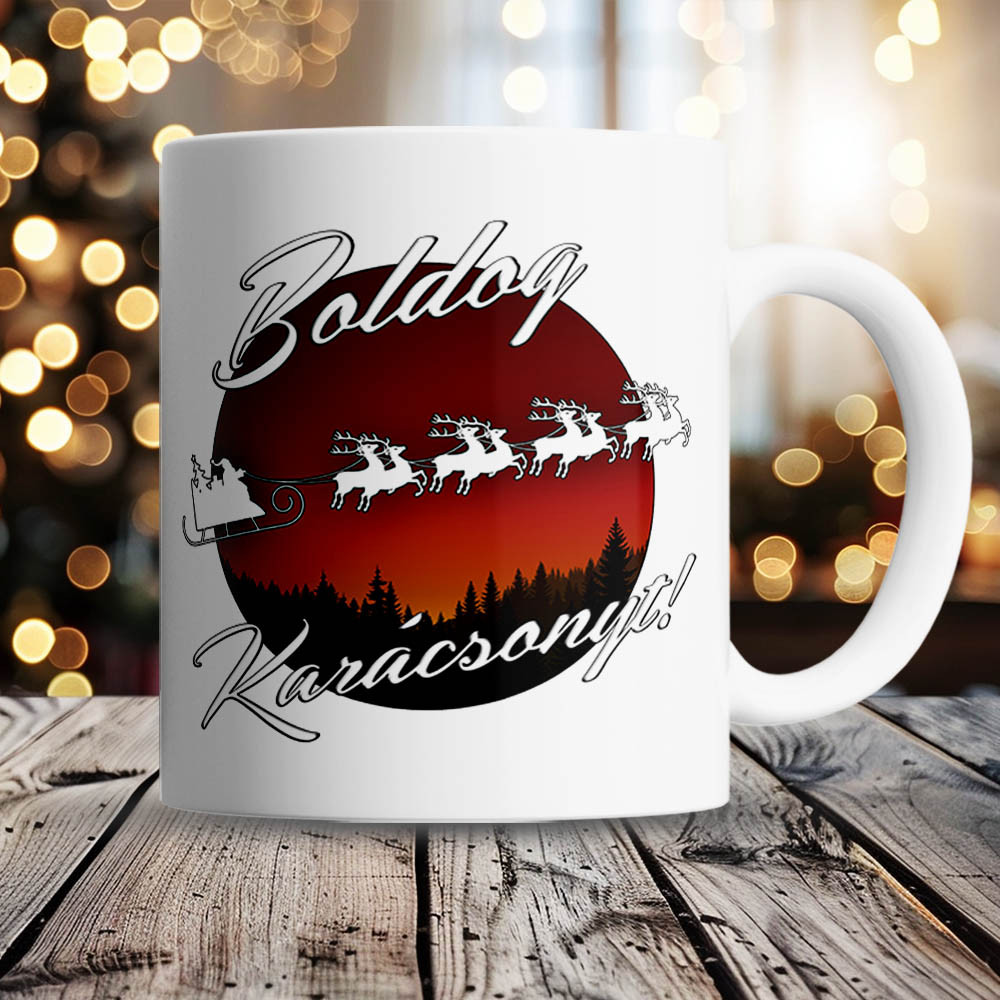 Karácsonyi bögre, mikulás szánja. Karácsonyi ajándék férfiaknak és nőknek, egy praktikus bögre, aminek bármelyik korosztály örülni fog. Boldog karácsonyt felirattal és mikulás szánjával bárki otthonában megállja a helyét akár dekorációnak is. A bögre színét Te döntheted el így a megfelelő szín kiválasztása után, mi pár napon belül küldjük is neked a tökéletes ajándékot.