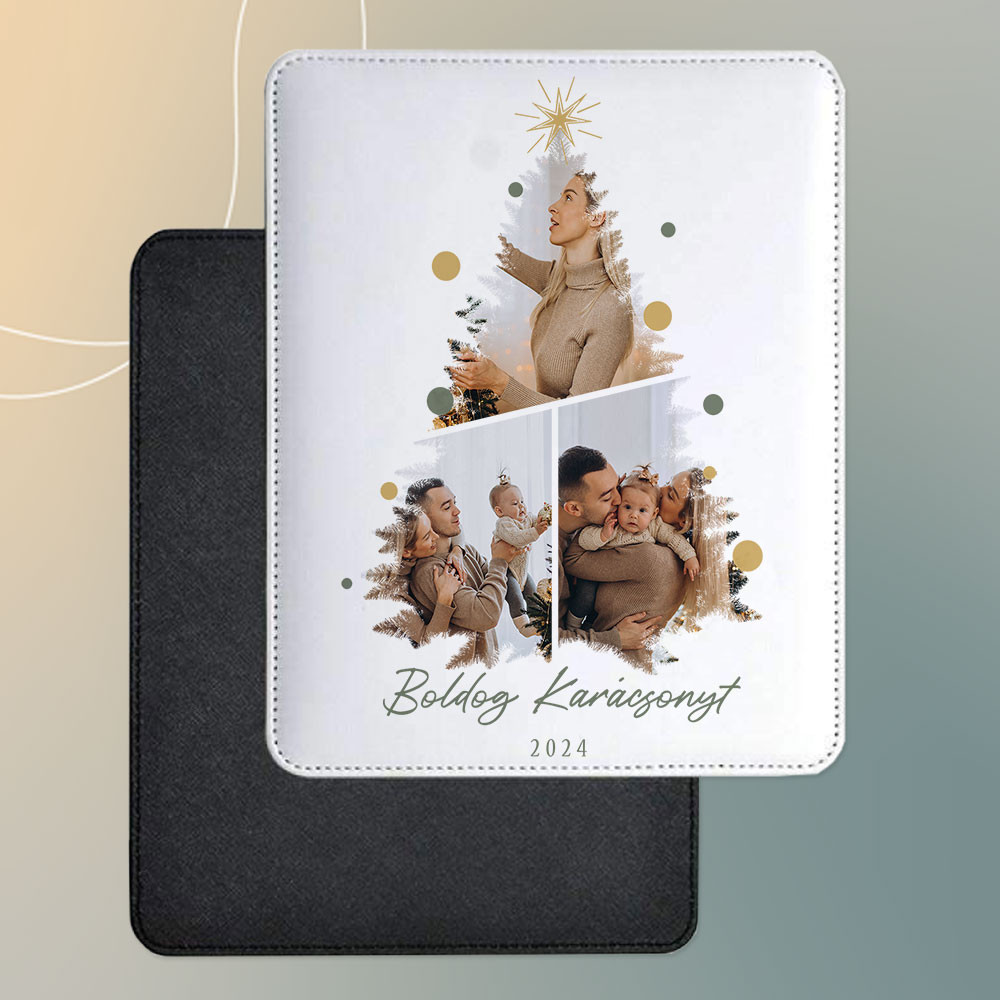 Fényképes egérpad, boldog karácsonyt. Kollázs fényképes egérpad karácsonyra szüleidnek, barátodnak, testvérednek az év legjobb pillanataival. Különleges ajándék a szeretet ünnepére akár nagyszüleidnek is. Egy meglepetés amiről bármikor eszébe jutsz, annak a személynek akinek szántad, mikor ránéz. Egérpad, melyen egy 3 fotóból álló kollázs fotóösszeállítás látható fenyő alakzatba, évszámmal és Boldog karácsonyt felirattal.