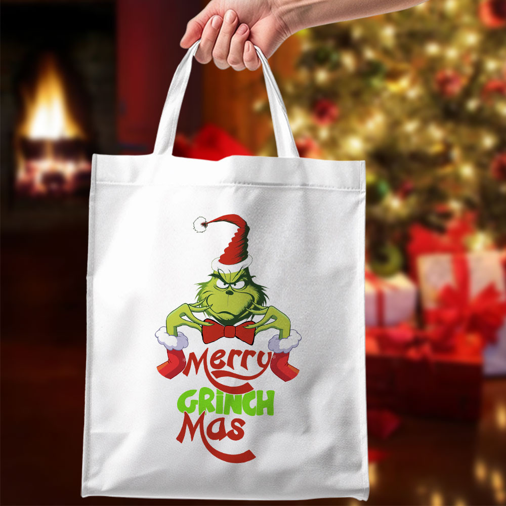 Merry Grinchmas táska, karácsonyi ajándék. Vicces vászontáska az örök kedvenc grinccsel, kívánj viccesen boldog karácsonyt másoknak, egy ilyen táskával vagy ajándékozd meg karácsonykor egy Merry Grinchmas feliratos táskával barátaidat, családtagjaid. Tartós mintával, örök emlék marad, amit használhatsz díszcsomagolásként is ajándékodhoz vagy bevásárlótáskának.