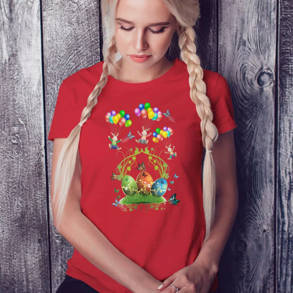 Húsvéti ajándék, ünnepi húsvéti női póló. Karcsúsított szabású női póló húsvéti mintával, ami az ünnepek alkalmával kiváló viselet lehet, de ajándéknak is tökéletes.