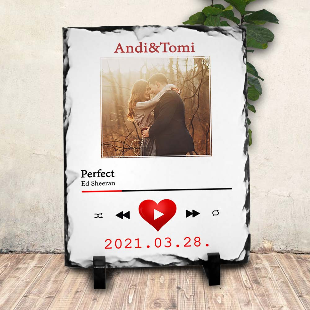 Szerelmes ajándék, közös dal kőlap. Valentin napi, évfordulós ajándék barátodnak, barátnődnek, házasoknak. Lepd meg férjed, feleséged akár karácsonyra is egy különleges kőlappal, ami egy képeteket ábrázolja egy zenelejátszóban ahol a közös zenétek megy.
