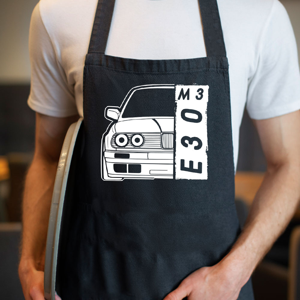 BMW ajándék, BMW M3 E30 kötény. Ha imádod a sebességet és a száguldást ez a BMW M3 E30 mintás kötény a tied is lehet, nincs más dolgod mint kiválasztani a megfelelő színű kötényt és megrendelni, mi pedig pár napon küldjük neked álmaid kötényét.