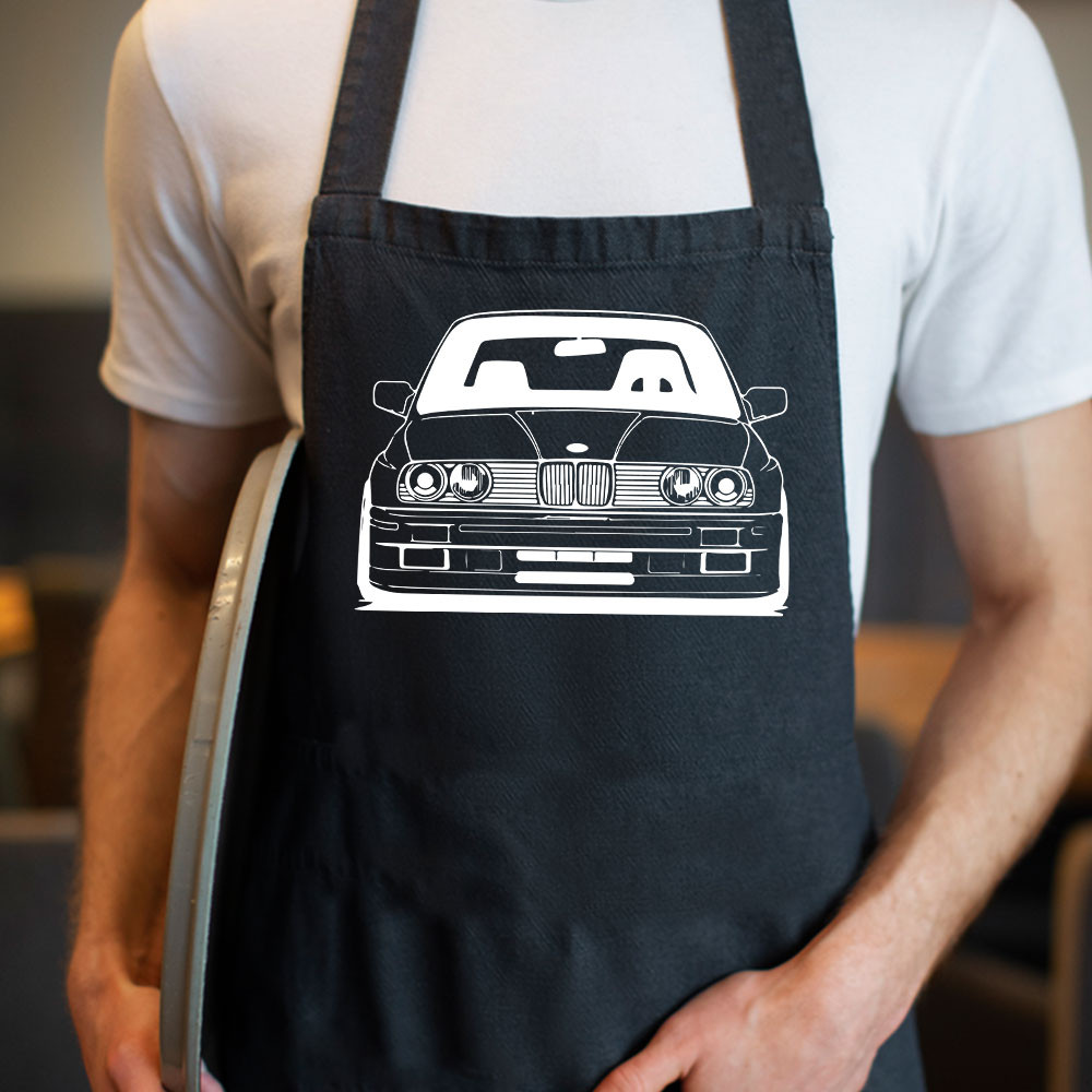 BMW ajándékok, BMW E30 front kötény. Egy igazán különleges autó büszke tulajdonosa vagy, de ha csak álmodozol egy ilyen típusról, akkor ez a kötény tökéletes választás számodra. A kötény fekete és fehér színben is választható a minta színe is ehhez igazodva változik.